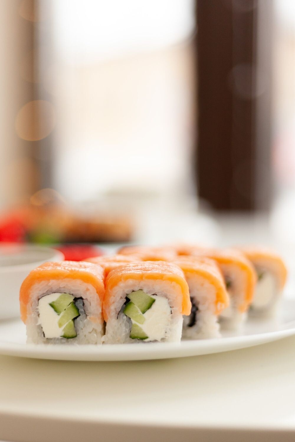 Состав: рис, сыр творожный, семга слабой соли, огурец