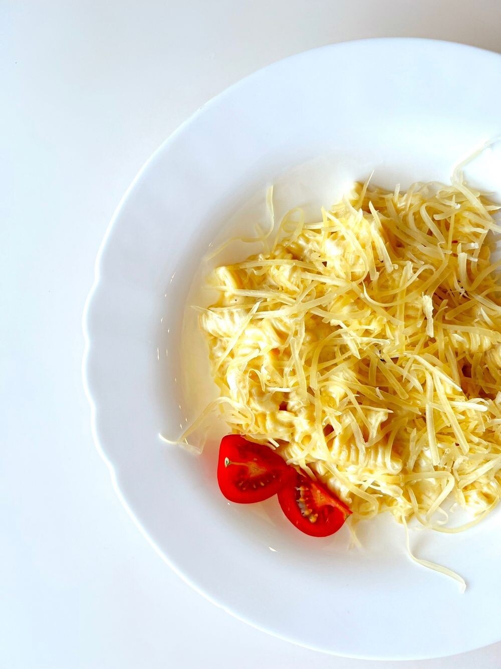 Состав: фузилли, сливки, сыр «Чеддер», сыр «Моцарелла», сыр «Пармезан», сырный соус