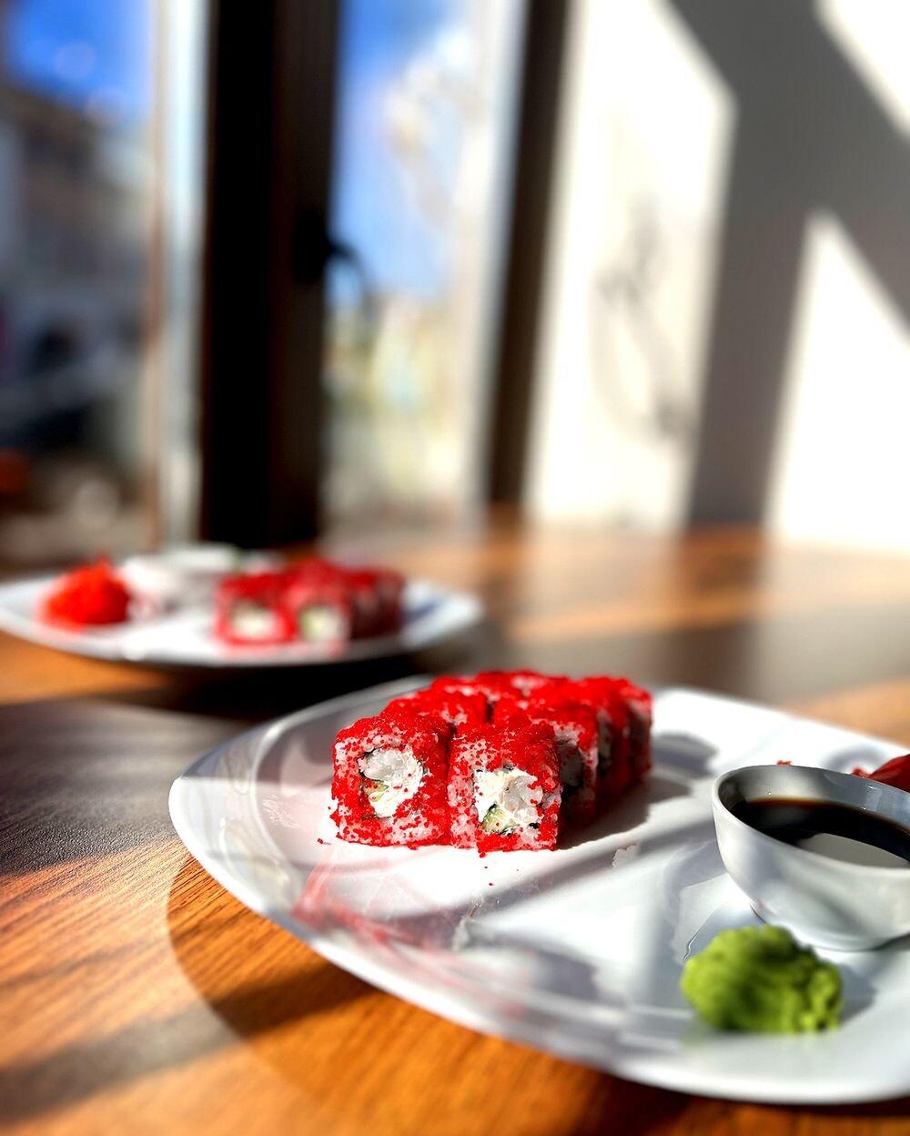 Состав: рис, тигровые креветки, сыр творожный, огурец, икра масаго